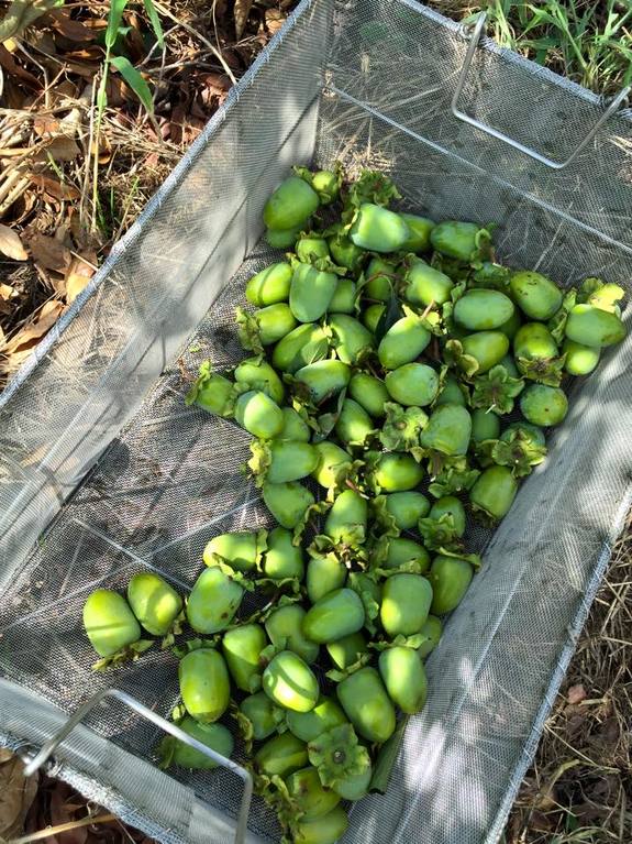 夏の終わりに青い渋柿が実る頃、8月末〜9月初め、柿渋作りが始まります。
