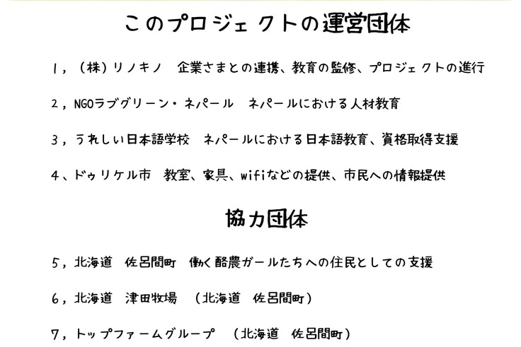 株式会社リノキノが現地にご支援いただいたお金を送金し、必要な備品を現地にて購入いたします。