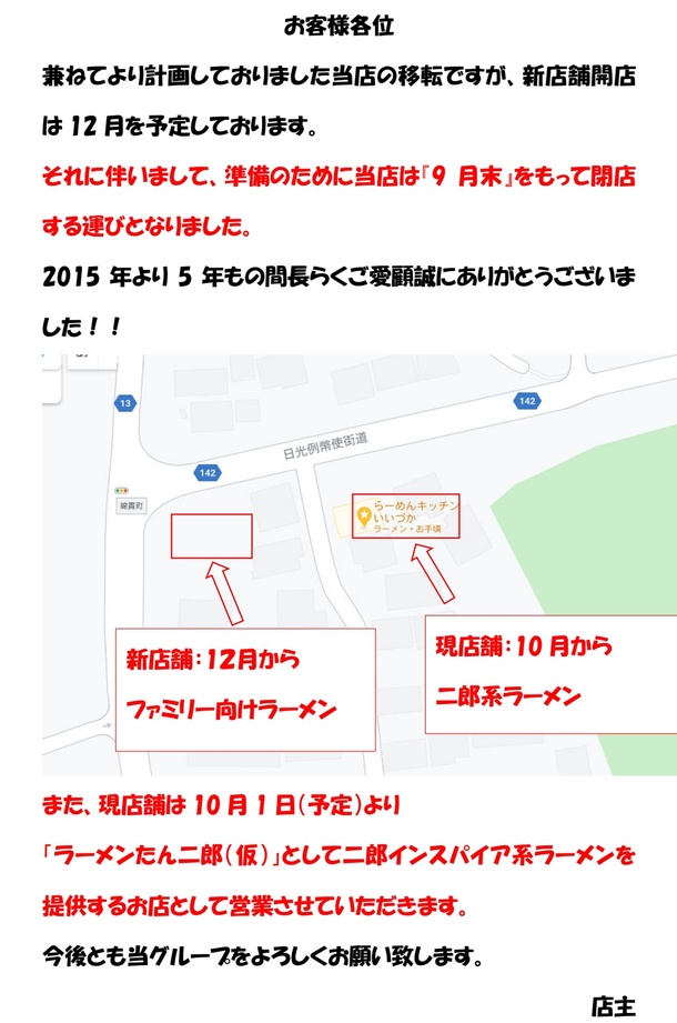 尚、現店舗である、らーめんキッチンいいづかとしての営業は9月末までとなります。