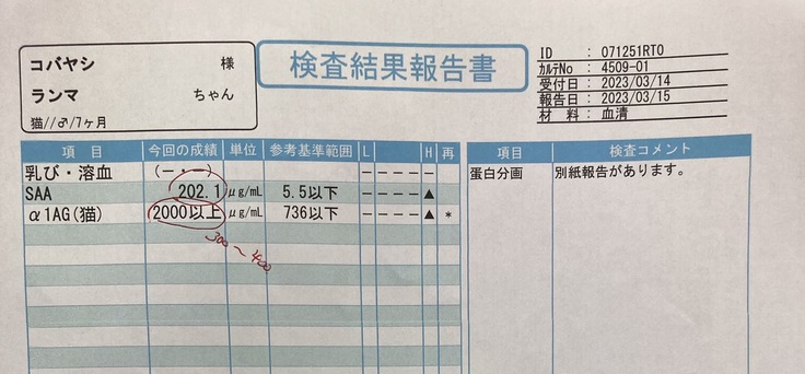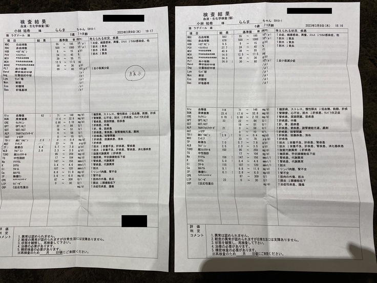 確実な結果がくるまでらんまに「大丈夫だからね」と声をかけ撫でながら涙を流す数日間でした。
