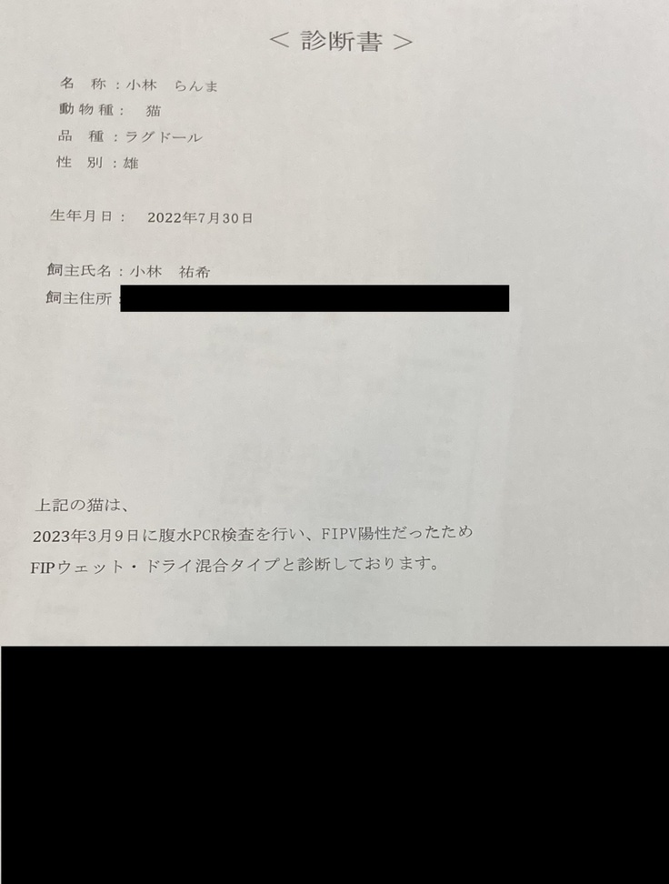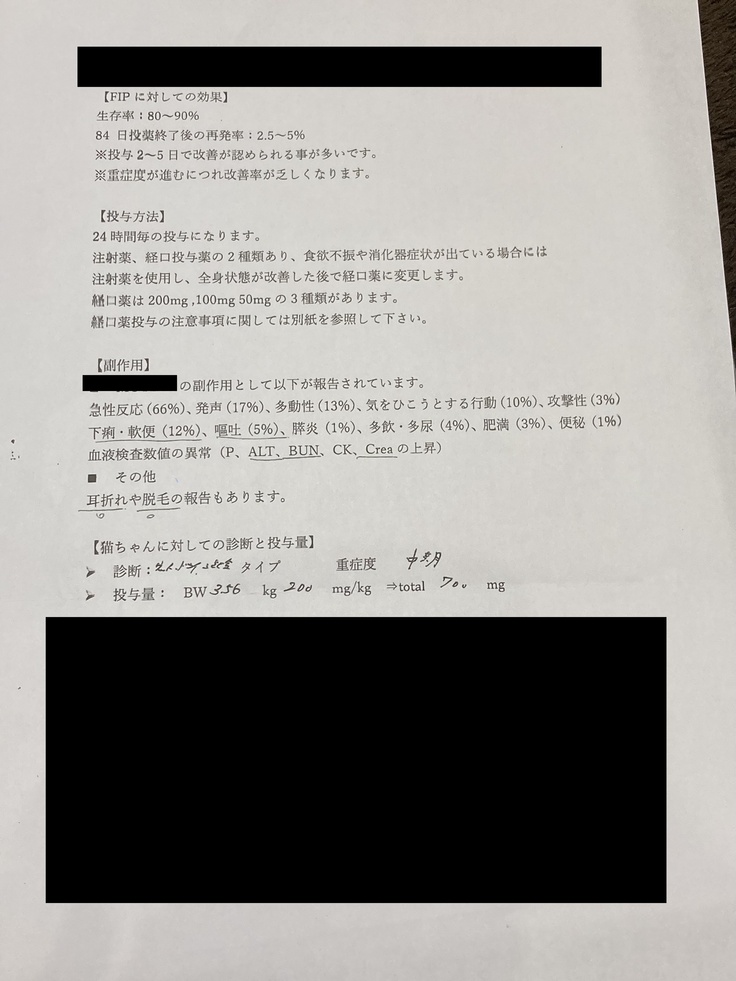 かかりつけの病院はFIPの治療をしたことがないとのことで、