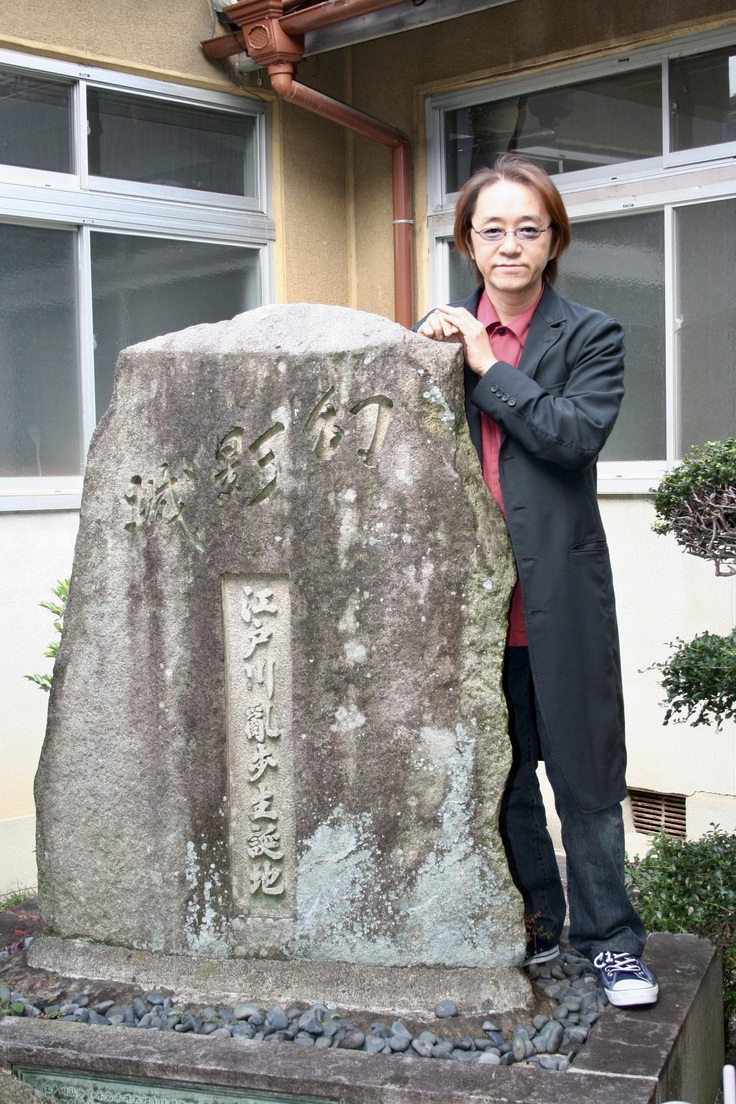 (2006年10月28日、当時の江戸川乱歩生誕地碑にて)