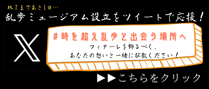 そこで、乱歩作品やミステリーが好きな皆様から、周囲の方々にぜひとも本プロジェクトをご共有いただきたく、皆様の想いを添えて、Xでご投稿をお願いできないでしょうか…!
