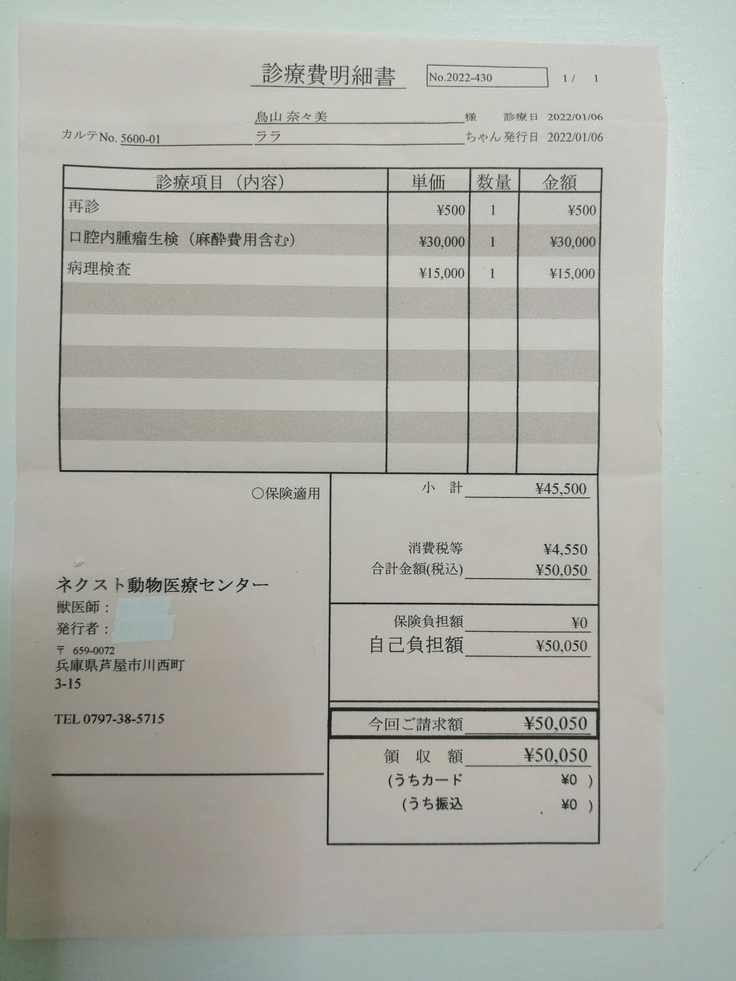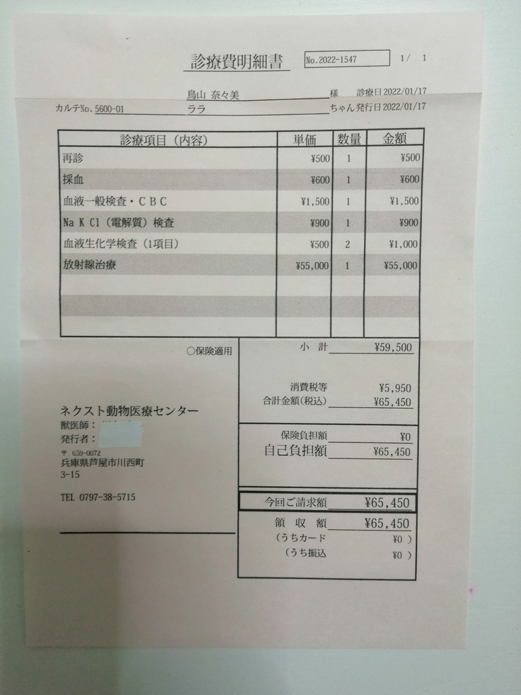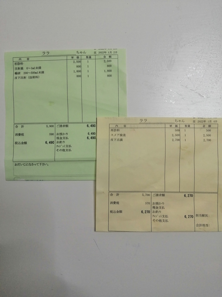 ※毎回血液検査をして治療が実施されますが、万が一途中で亡くなった場合もこれまでのララの治療費に充てます。