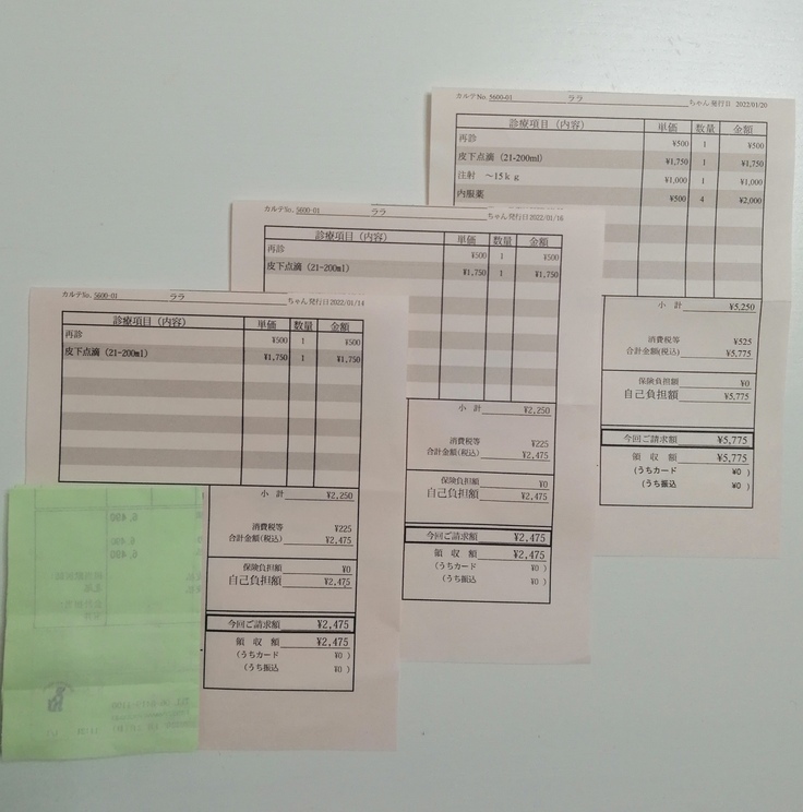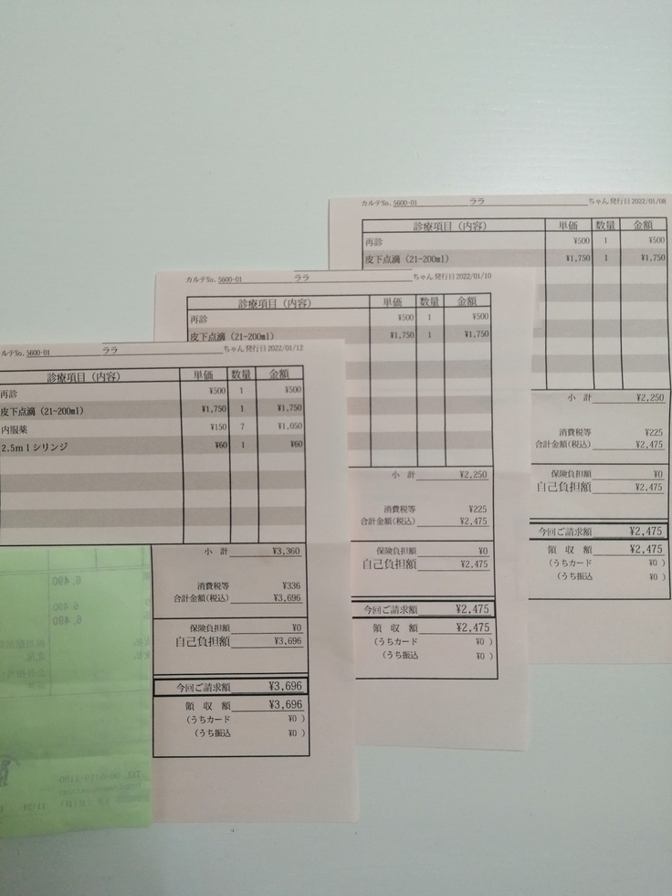 一日おきの点滴の診療明細書です