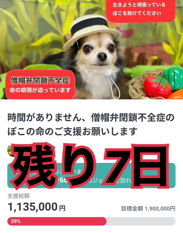 大変多くのご支援いただいた皆様、あと本当に辛い思いをしている、ぽこを救うためにも力を貸してください💦