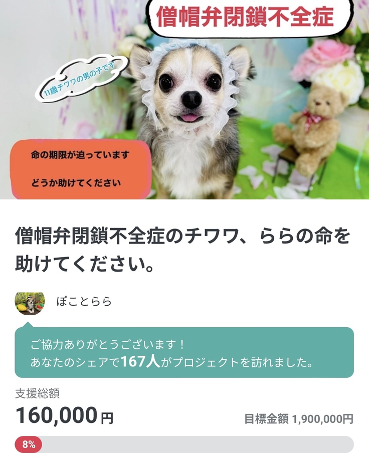 そうすることにより、ご支援いただける可能性が上がりららの命が助かる可能性が高くなります。