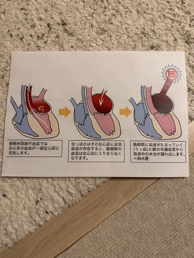 まず、ららの病気は僧帽弁閉鎖不全症という心臓から送り出される血液が逆流しないようにするための弁が壊れてしまっている病気です。