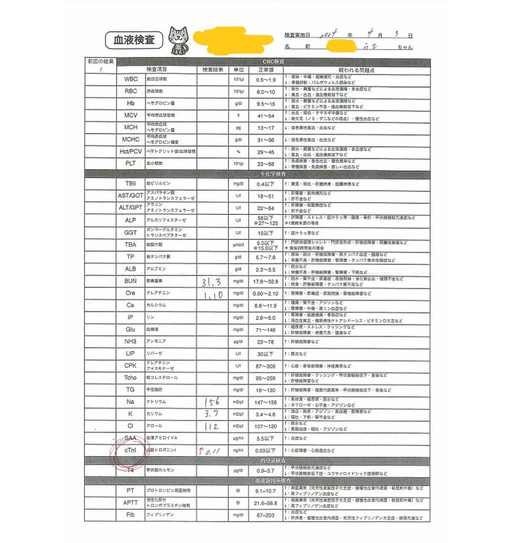 ●体重 3.1kg(腹水を差し引くと3kgを切っており、健康時の3.4kgからかなり減少しています)