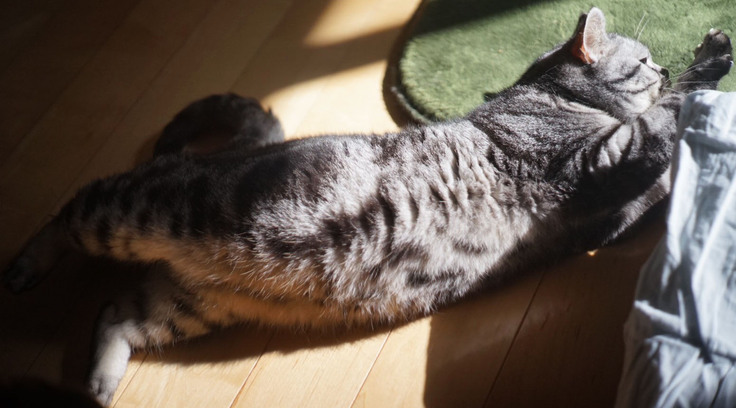 伸びをすること、へそ天で寝ること、そんな普通の生活を送ることもできなくなっています。
