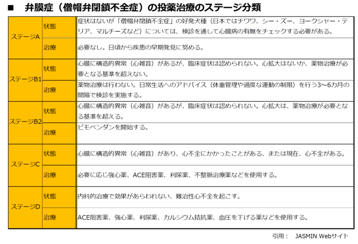 【僧帽弁閉鎖不全症ステージ分類】