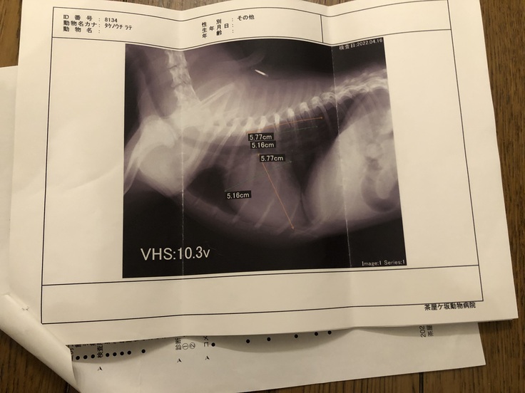 紹介された茶屋ヶ坂動物病院さんでの検査の結果は重度の僧帽弁閉鎖不全でステージB2からCの以降期心不全発症直前レベル、現時点でも心不全、運動不耐、失神、左房破裂による突然死の可能性ありと診断されました😭。