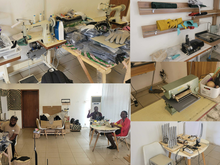 MERGERICK NIGERIAのメンバーと、グローブ製造工房