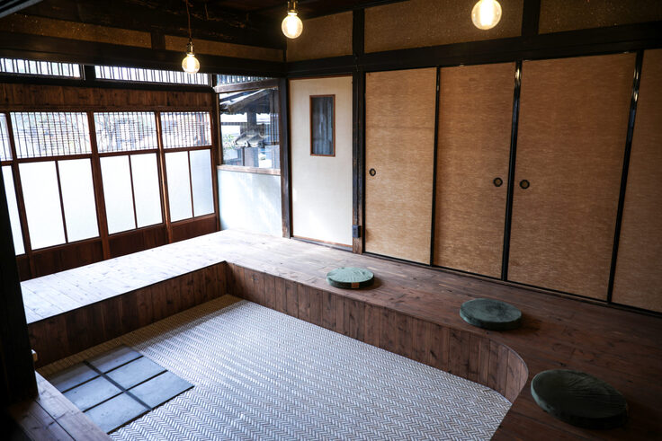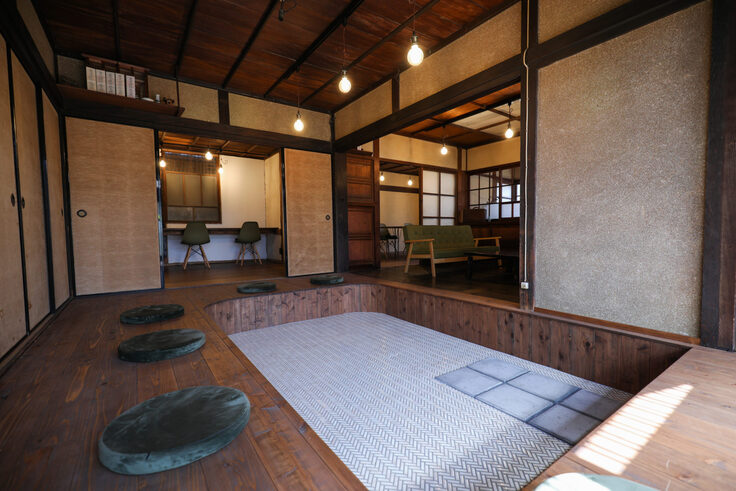 宿となる場所は、2棟の建物と蔵、水屋等があり、広い中庭を抱えた構成となっています。現在は、郵便局として使われていた1棟をコワーキングスペースとして活用しています。