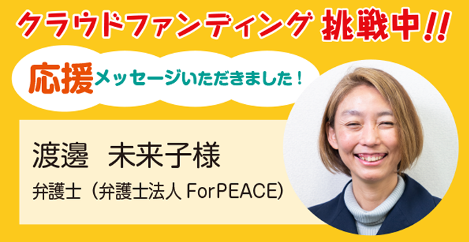 弁護士法人ForPEACE 渡邊未来子様より応援メッセージをいただきました
