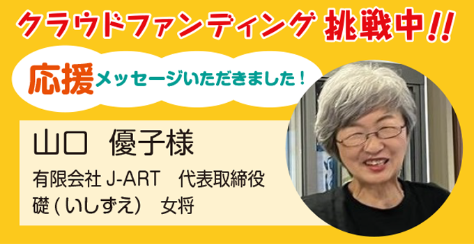 有限会社J-ART代表取締役 礎(いしずえ)女将 山口優子様より応援メッセージをいただきました