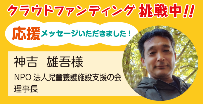 NPO法人児童養護施設支援の会 理事長 神吉雄吾様より応援メッセージをいただきました