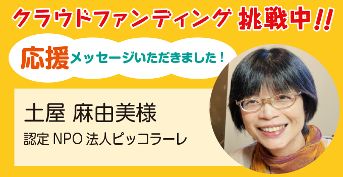 認定NPO法人ピッコラーレ 土屋麻由美様より応援メッセージをいただきました