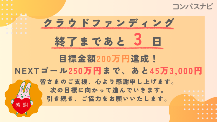 クラウドファンディング終了まで残りあと3日!