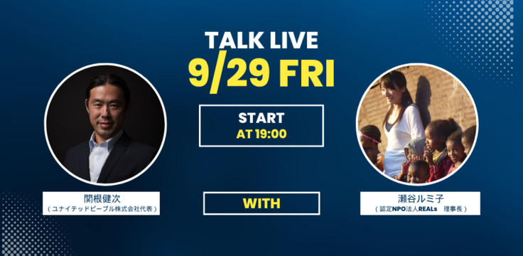 関根健次(ユナイテッドピープル㈱代表)×瀬谷ルミ子(REALs 理事長)トークLIVEのお知らせ
