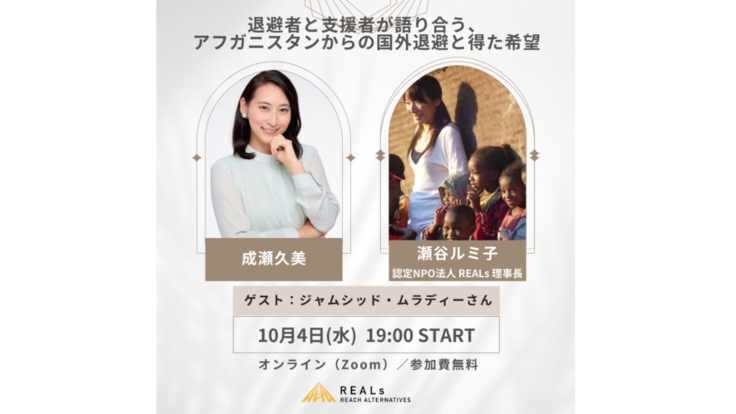 2021年8月のカブール陥落以降、アフガニスタンで命の危機にある人たちの国外退避・保護支援に取り組むREALsの理事長、瀬谷ルミ子のトークLIVE。