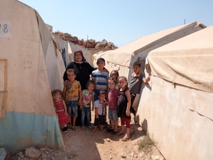 「私たち家族は農園を営み、ブドウやイチジクを育て幸せに暮らしていました。二人の息子は大学を優秀な成績で卒業し結婚、仕事も順調でした。でも戦闘で村が襲われ、息子たちと夫は命を落としました。生き残ったのは孫たちと私だけ。アサド政権とロシアによる空爆のなか、泣き叫ぶ孫たちの手を引いて必死で走って逃げました。着の身着のままこのキャンプにたどり着きました。」