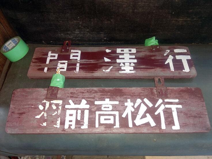 ■「羽前高松行」と「間沢行」と書かれたサボ