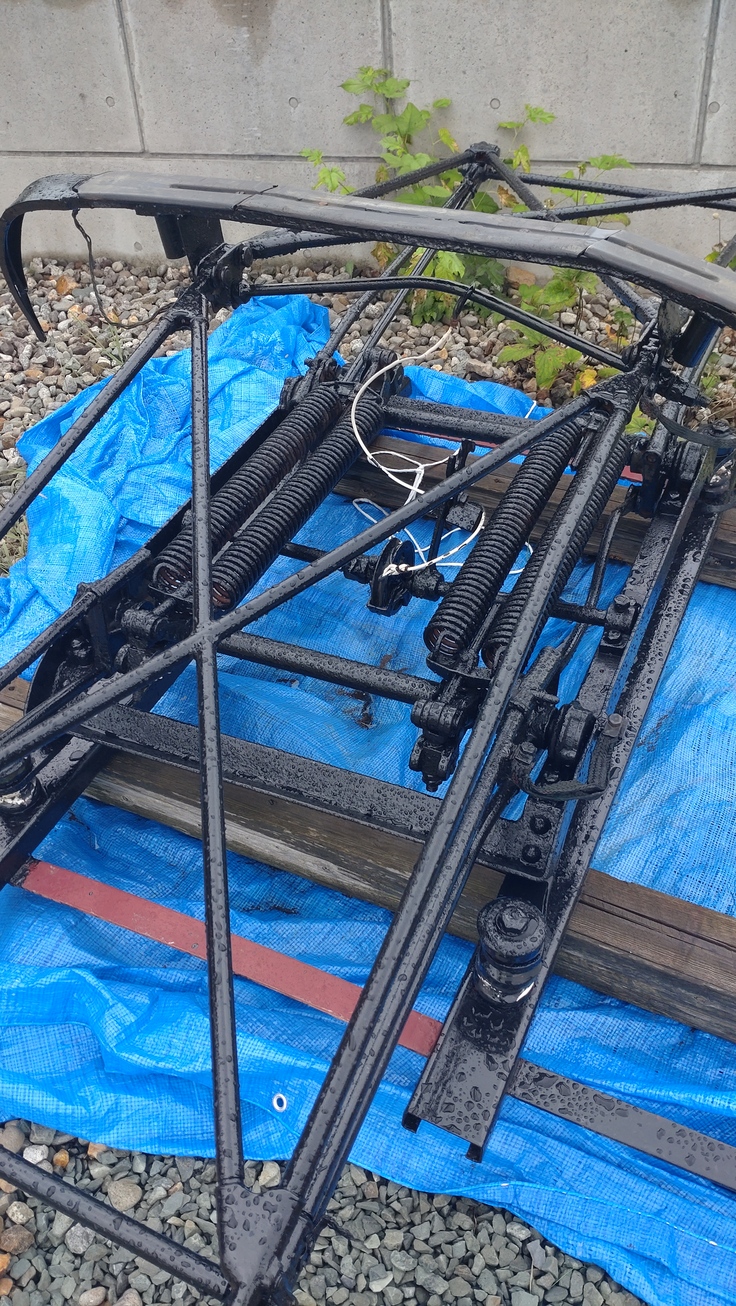 約1時間で車体の下半分の1回目の塗りなおしが完了。