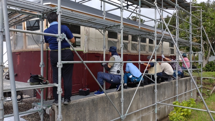 これによって残りの修繕作業は、修繕作業業者によるパンタグラフの取り付けや内装の仕上げと、塗装業者による外装及び内装の仕上げ塗装くらいとなりました。