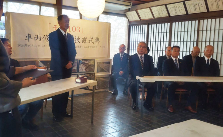 本日、三山電車保存会主催の「モハ103車両修復完成披露式典」が多くの参列者のもと、執り行われました。今年4月から始まったモハ103車両の修復が無事に完了し、このように皆様にお披露目できることを大変嬉しく思います。これもひとえに、皆様からの温かいご支援のおかげでございます。心より感謝申し上げます。