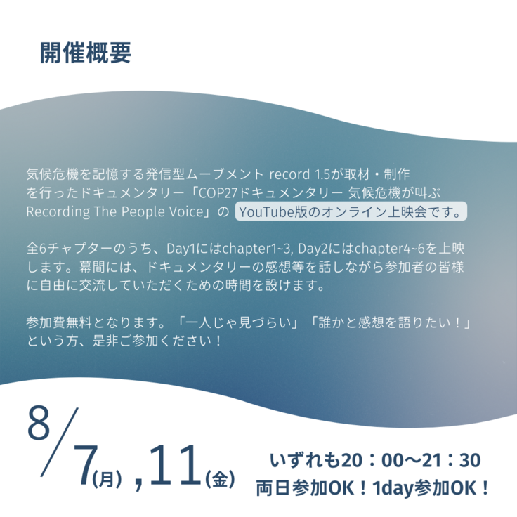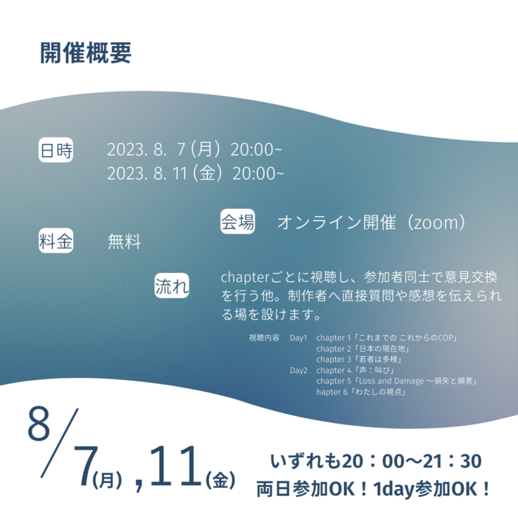 【イベント詳細】 開催日時:2023年8月7日(月)&11日(金) オンライン上映会&交流会 20時 ~ 21時30分