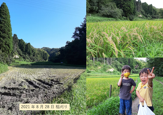 初年度の本年度は我々が管理する 55a の水田のうち、35a の谷津田にて食用米「ふさこがね」の栽培を行い、約 750kg の収穫に成功しました。