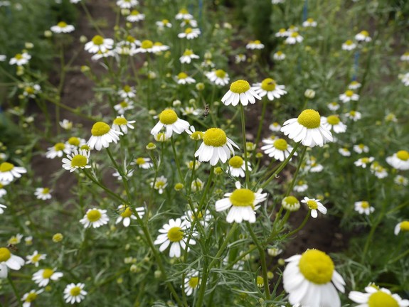 (ぐんぐん育って、満開の花を咲かせてくれたジャーマンカモミール♪)