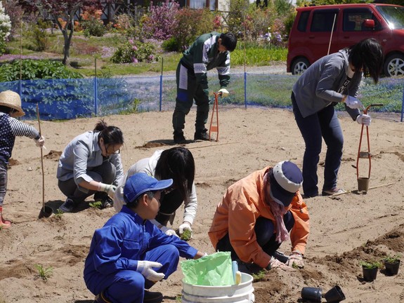 (霜の心配がなくなった頃に、みんなでココロをこめてハーブの苗を定植しました♪)