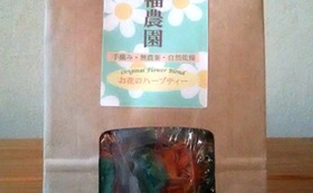 2)みんなで育てた手摘み無農薬フラワーブレンドハーブティー 1袋(5P)