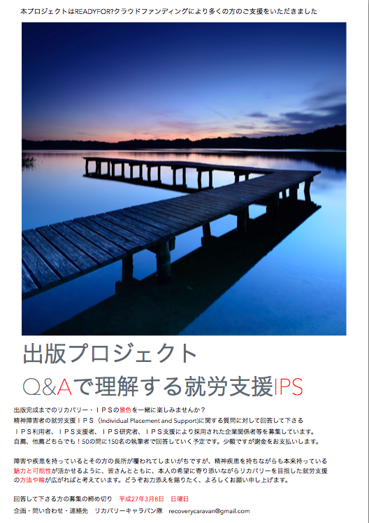 この50の問いに対し、回答して下さるIPS実践者、IPS研究者、IPSサービス利用者、IPS支援により採用された企業様をこれから公募させていただきます。