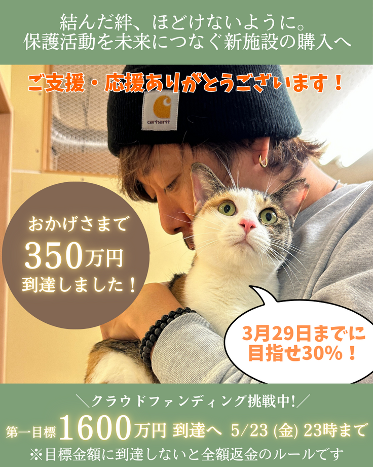 3月29日(土)までに480万円を目指しております!スタートダッシュで第一関門突破に向けて、引き続きご拡散のご協力をどうかお願いいたします!
