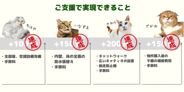 第一目標金額では、新施設の物件購入費用として充てさせていただきます。