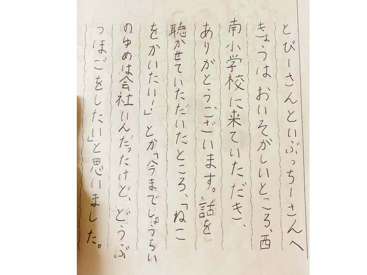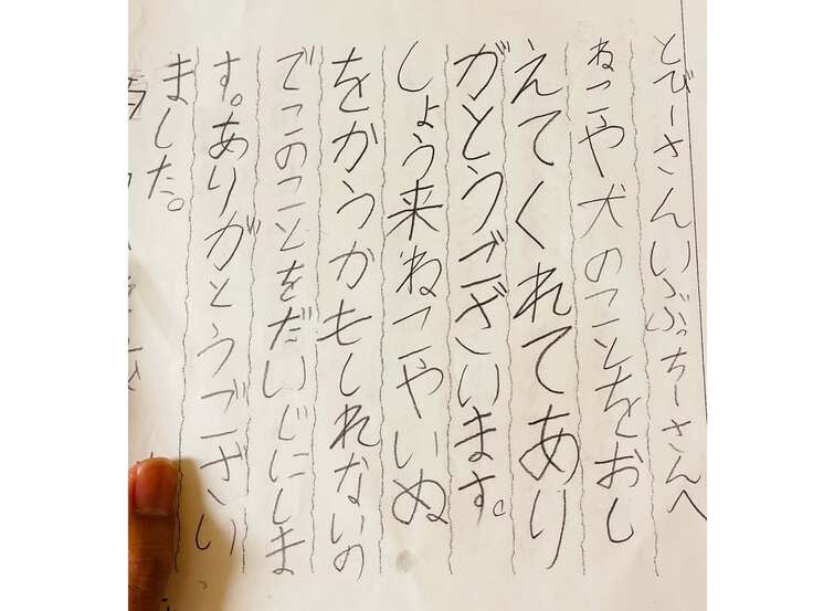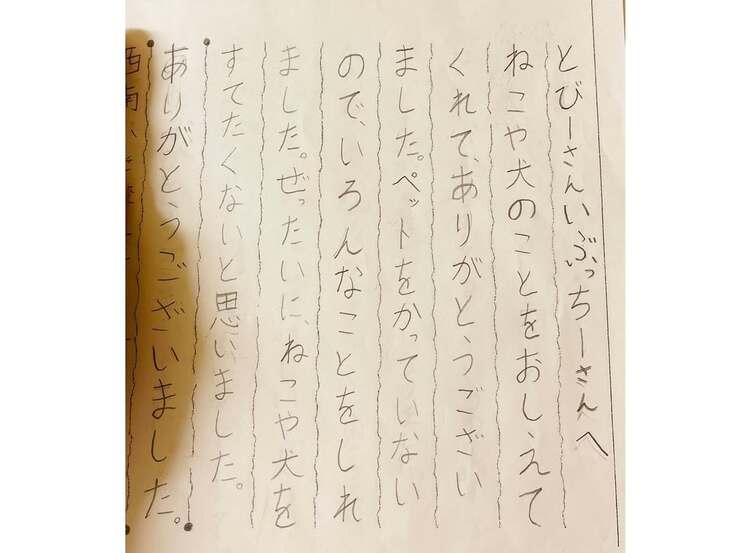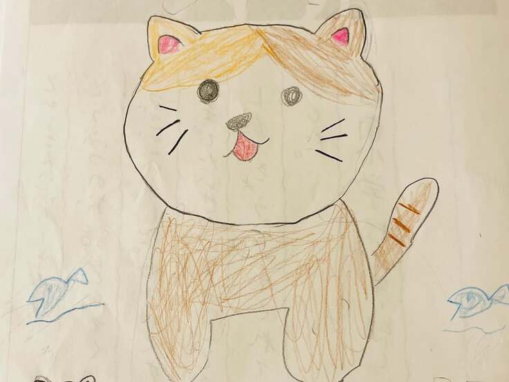 感想文の裏に描いてくれた施設の猫ちゃん達も僕の絵より遥かに上手です。