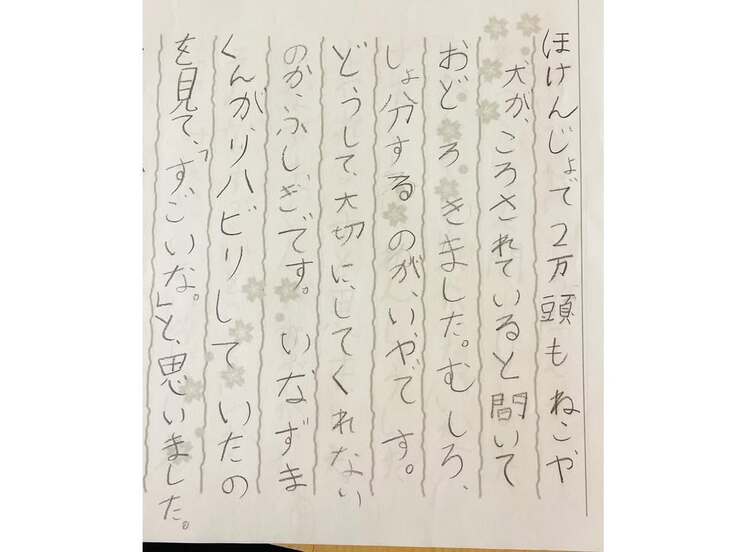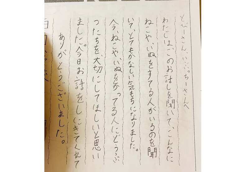 授業内容は家族と離れ離れになった施設の子達のスライドを見てもらったり絵本を読み聞かせたり、少し殺処分のことにも触れました。