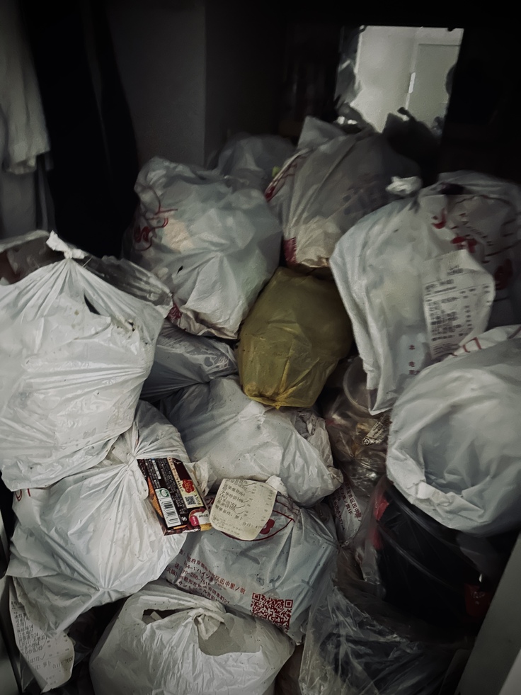膝が埋まるほどのゴミ、もう猫ちゃんを探しようがありません。