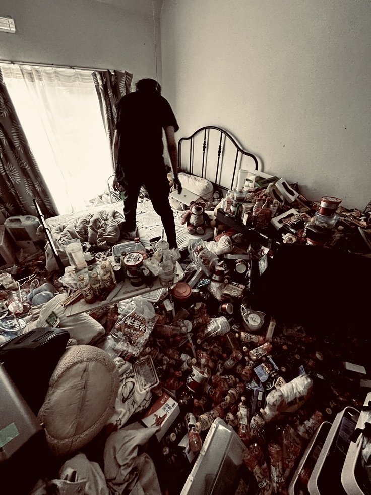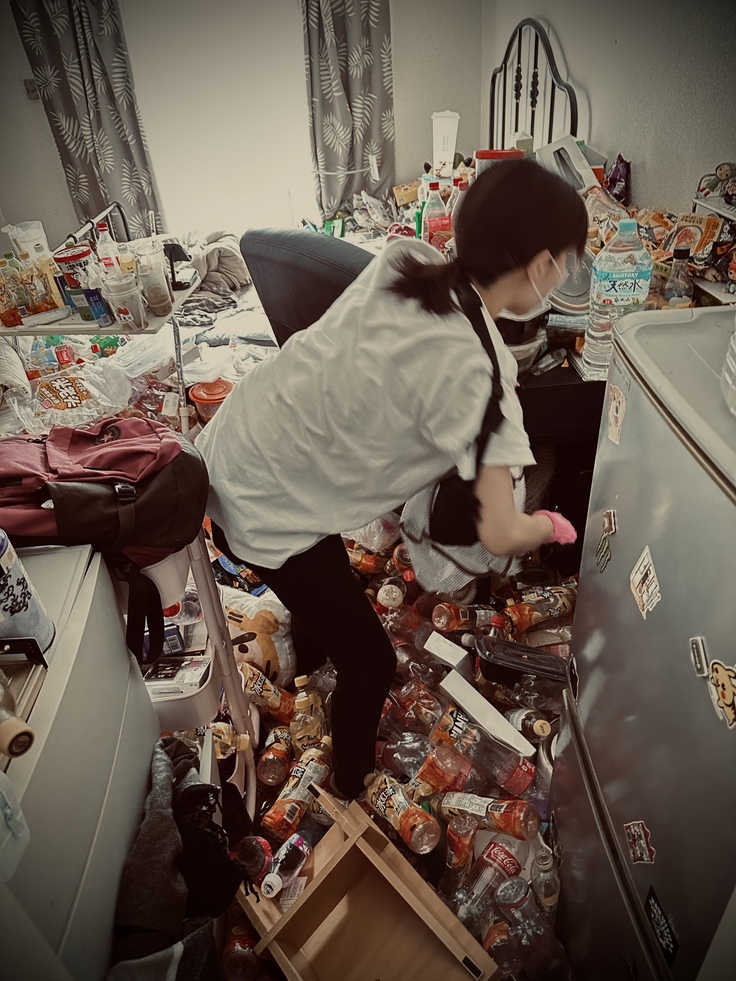 「玄関まで足の踏み場もないぐらい荒れてます……」とだけ伝え、頭を抱える大家さんを背に再度室内へ。