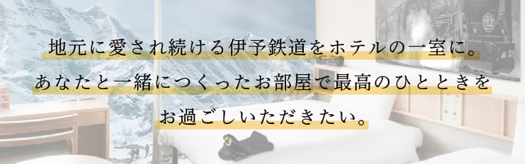 ホテルのコンセプトは『THE STATION』としており、路面電車や郊外電車のレールビューを臨んでいただける客室や、鉄道を存分に感じられる『伊予鉄ルーム』をご用意します。