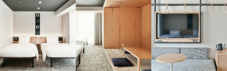伊予絣があしらわれた客室や、愛媛各地のおいしいものを旅するようにお召しあがりいただける朝食などをご用意し、館内全体で愛媛・松山を感じていただけます。そのほか、ホテル館内には、日帰りでもご利用いただける予定の大浴場や、貸し切りでご利用いただける家族風呂を設け、お客様にくつろぎの場所をご提供いたします。