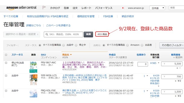これらを片付けないことには、先になかなか進めないため、2~3日中には登録を終え、アマゾン配送センターに送り届ける必要があります。