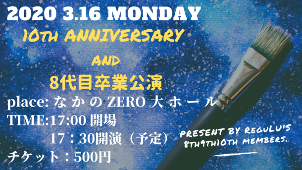来年の2020年に本校ダンス部は10周年を迎えます。その記念公演と今年の高Ⅲ8代目の卒業公演を兼ねた自主公演を開催致します!