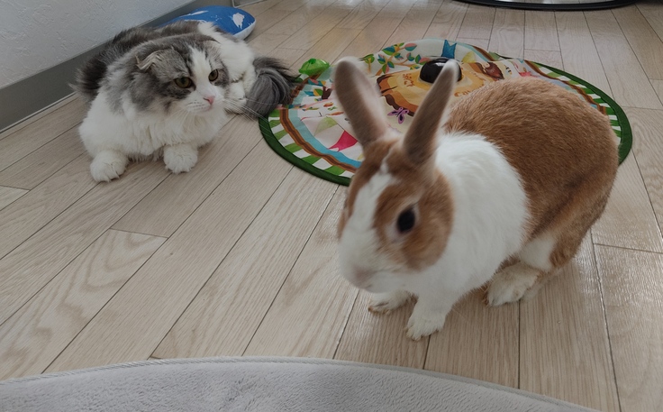 そこで今朝、レイくんに「遠慮しなくていい」こと、ショコさんには「ケージに勝手に入って来られたり、夜中眠いのにレイくんが走り回ってうるさくて申し訳ないけど許してあげて欲しい」ことなどを話しました。