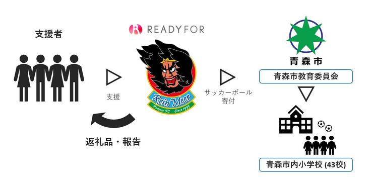 日頃よりクラブを支えてくださっているホームタウン青森市の皆様に何か還元できないかと考え、この度、クラウドファンディングで、ホームタウンである青森市の子どもたちへサッカーボールを寄付することと致しました。