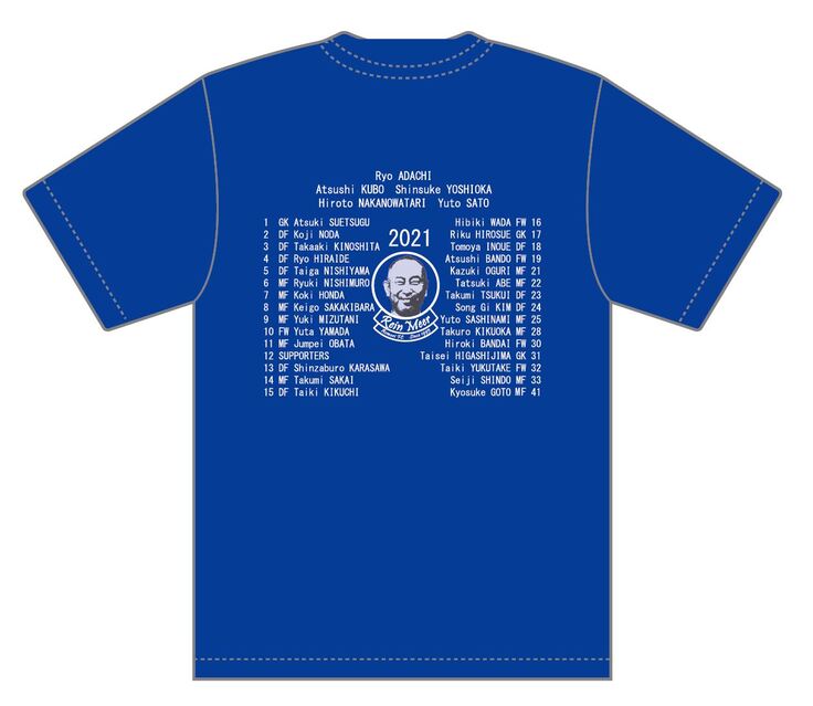 選手たちがデザインした限定Tシャツです。安達監督を中心に、このメンバーで何としてでもJ3に昇格したいという強い想いから、昇格Tシャツのようなデザインにしました。