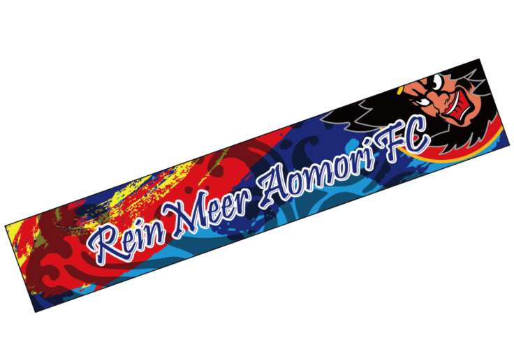 クラウドファンディング限定のねぶた祭りをモチーフにしたオリジナルタオルマフラーです。ラインメールカラーの青だけじゃなく赤や黄色なども入れることで、ねぶた祭りの熱さや激しさを表現しました。